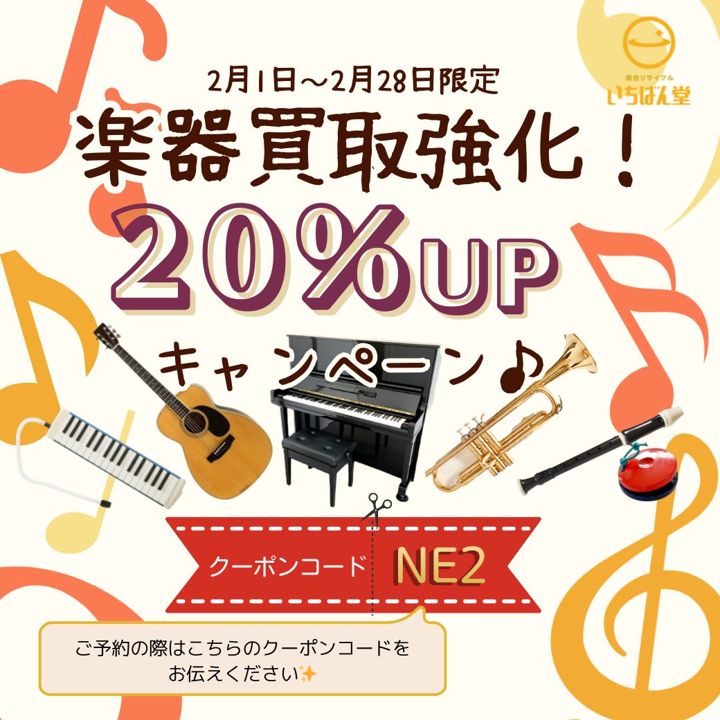 2月の買取強化キャンペーン【楽器買取強化!20%UP】